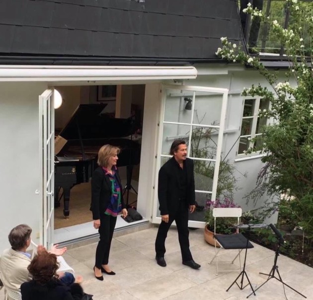 Zum Auftakt war - unter Einhaltung aller Vorschriften bei der Künstlerin zu Hause ein Beethoven - Programm zu erleben. Soll heißen: Die Gäste saßen im Garten, Anika Vavic nahm überdacht am Steinway (eine Leihgabe der Fir ma) Platz und der exzellente Schauspieler Michael Dangl rezitierte im Freien .